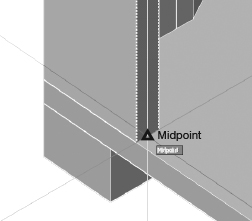 Type MOVE. Select the rear wall and set it in place, so that its outer face aligns with the midpoint of the corner post as shown in the figure below.
