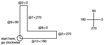 Type POLYLINE. Click on the lower left-hand corner of the floor to begin drawing an outline of the corner post. Refer to the diagram below for dimensions. Starting at the lower left-hand corner, continue clockwise around the outline. For each new point, type the numbers as written. Note: The POLYLINE command creates a “polyline” (a single object consisting of multiple straight or curved segments). In Rhino (as distinct from AutoCAD), a POLYLINE need not be on a single plane. A closed polyline can be used as the base for a solid extrusion, as shown in the next step.