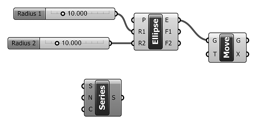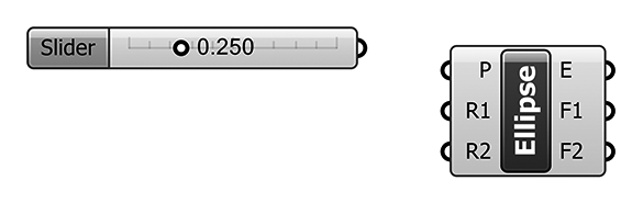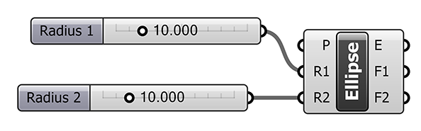 However, we want the component to produce variable-sized ellipses. Therefore, we need to introduce variable input in the form of number sliders.