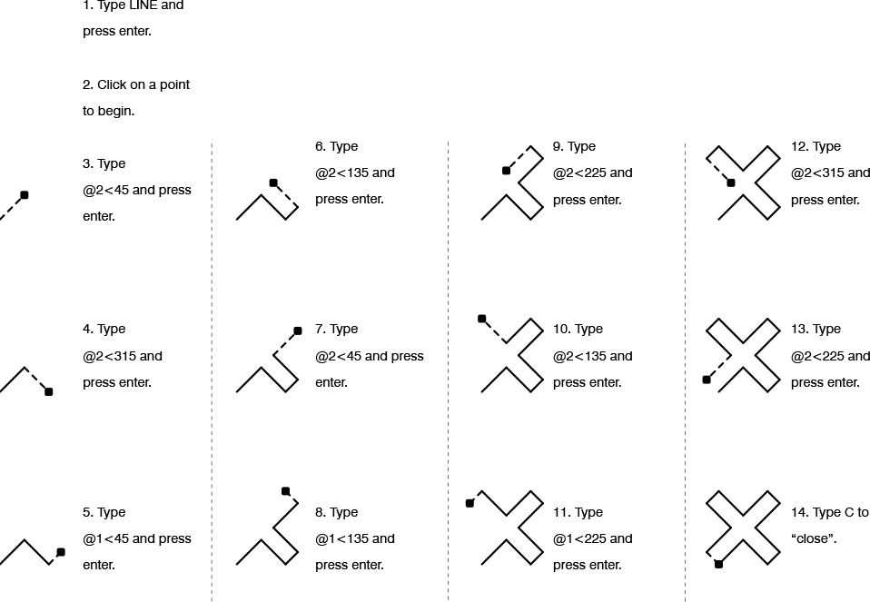 There are several methods for drawing simple 2D outlines in AutoCAD. It’s useful to become familiar with each of the methods, because these can be generalized and combined to produce more complicated drawings.