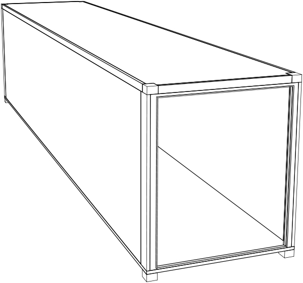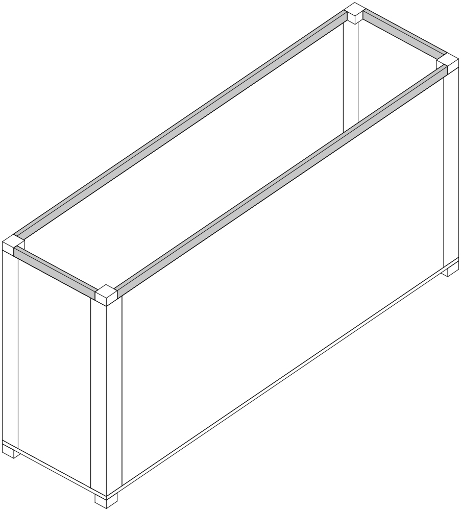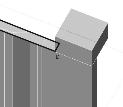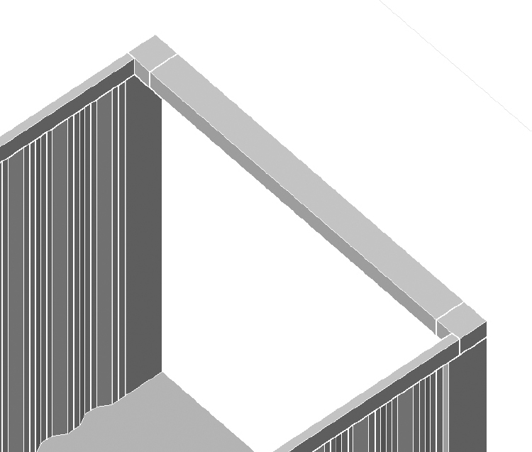 Using a procedure similar to the one you used earlier to construct the container’s side walls, use the Wall: Architectural tool to build four “rails” around the top edge of the container as shown in the diagram below. Note, when you begin constructing the first wall, set the Base Constraint to Roof, the Top Constraint to Unconnected, and the Unconnected Height to 4.5” (four-and-a-half inches).