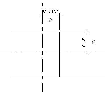 On the Annotate tab, Dimension panel, choose the Aligned tool, and use it to dimension the wall-end-to-gridline relationships, making sure to click the padlock symbol to “lock” the padlock. Repeat this procedure for the wall-centerlines-to-gridline relationships.
