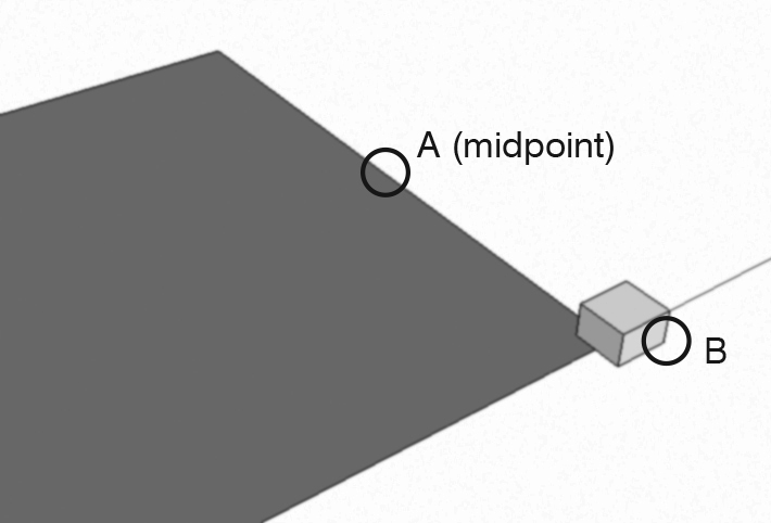 Repeat the previous step, but select both corner_blocks, and mirror them around the midpoint of the long side of the floor rectangle. Refer to the diagram below.